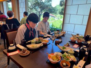 バスでの移動は長時間となりましたが車窓から流れる秋の景色を眺めたり、職員や保護者さんとの会話を楽しんだりしながら懐風亭へ無事到着しました。