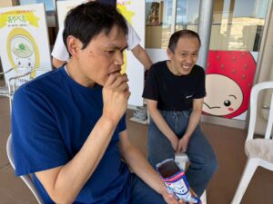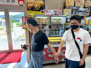 お昼は美しい日本庭園を眺めながら、いつもより少し豪華な料理をいただきました。穏やかな景色を眺めながらの食事は格別で、皆さんの笑顔がひときわ輝くひとときとなりました。昼食後は道の駅に立ち寄り、皆さんそれぞれ好きなお菓子やジュースを選んでもらい、購入したものをすぐに召し上がり、満足の様子でした。