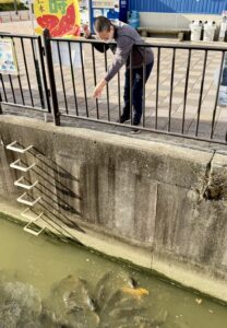 最後に鯉たちにも幸せのお裾分けをして本日の遠足は終了です♪