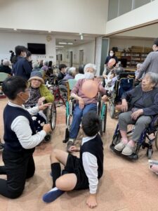 長尾小学校の5年生が交流に来られ、歌のプレゼントとゲームを考えて来てくれました(^_-)-☆