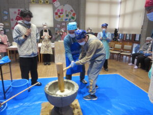 令和7年12月21日、のぞみ園食堂にて恒例の餅つき大会を開催致しました。当日は、さぬき警察署・源内クラブより2名ご参加頂き、利用者様・保護者様のご協力のおかげで108名の方にご参加頂き大盛況となりました。伝統的な行事を通じて交流が深まり利用者様の笑顔と共に新たな年を迎えられることに感謝致します。来年以降もより良いイベントを心掛けて参ります。